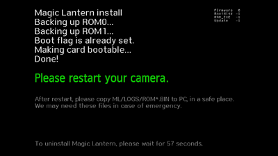 Magic Lantern は写真を記録するメディアにコピーしてファームウェアを読み込むことで利用できるので新たな費用は発生しません。もちろん,カメラ設定は後に編集を考慮しRAW撮影にすることをお勧めします。メモリーを消費するのでSDHCは64GB以上あると良いかな?